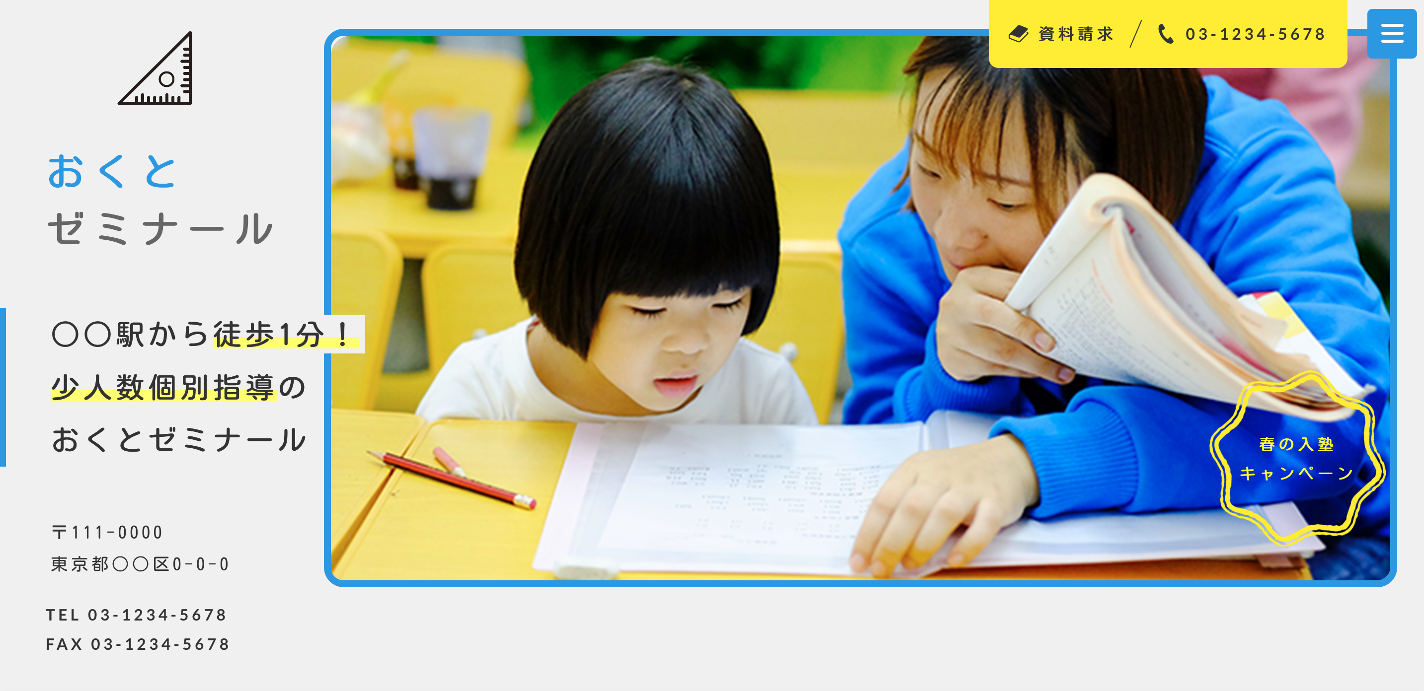 学習塾様向けのサイトモックとなります。ランディングページとしての制作も可能です。All:¥900,000〜LP:¥190,000〜